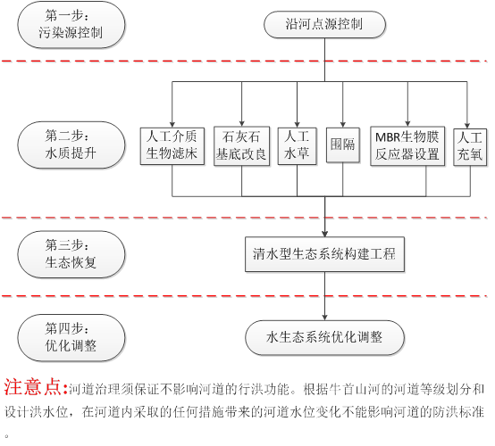 針對河道現(xiàn)狀和治理目標,中科水治理將牛首山河道治理分為三步走!